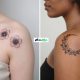 - Sleek edges with hair in an updo or natural style
