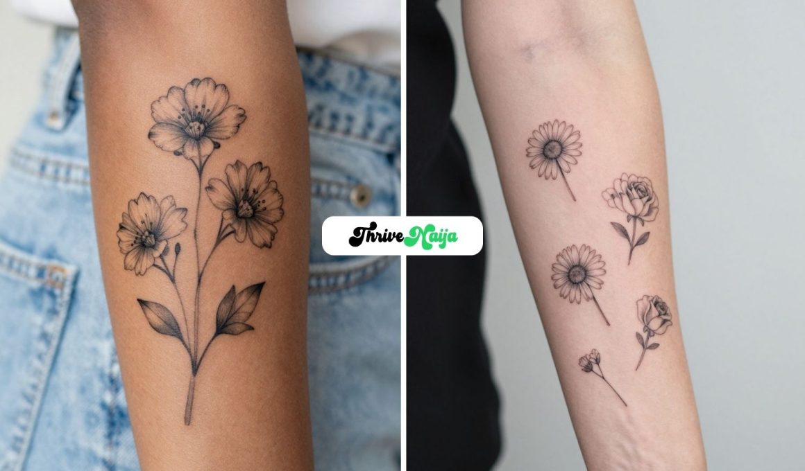 A half sleeve made of birth flowers brings together meaningful blooms in one thoughtful design that still looks soft and beautiful. It is perfect for someone who wants a flower sleeve tattoo that feels personal, symbolic, and unique to their story.