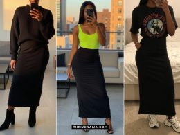Mix elegance and softness with a satin midi skirt and an off-shoulder sweater or blouse. Pair with ankle-strap heels and dainty jewelry for an effortlessly feminine look.