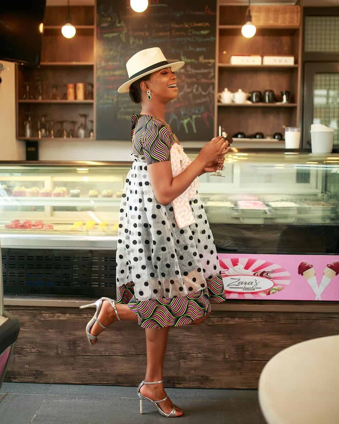 The length of this gown is just perfect, then we have the sleeve with black ruffles making it not so plain anymore it now depends on how you want to style yours, but this particular look is just so beautiful.