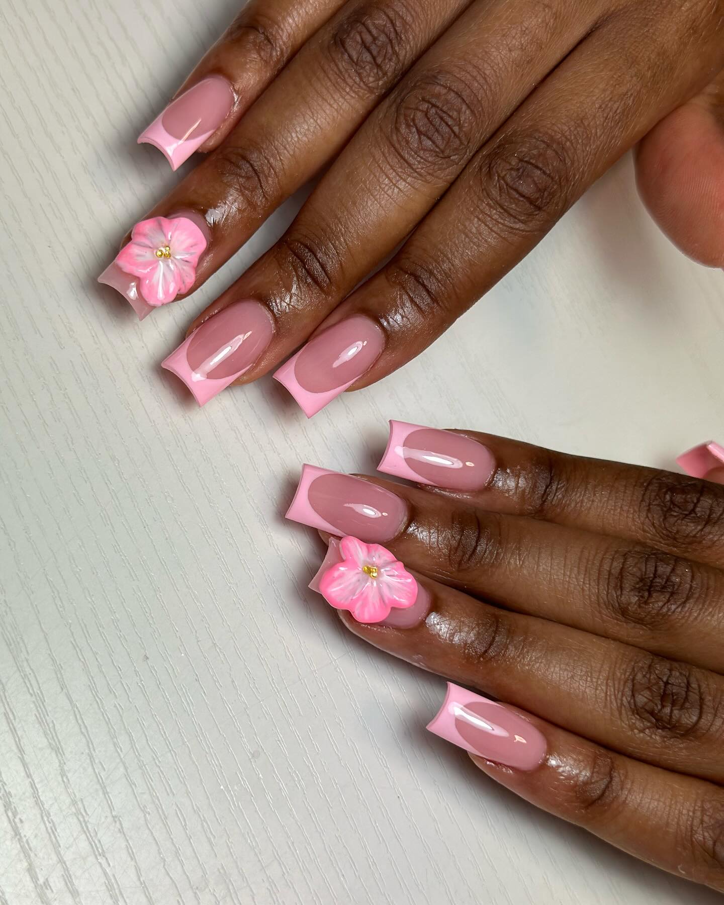 17. Pink on Pink French Tip with 3D Sculpted Flower