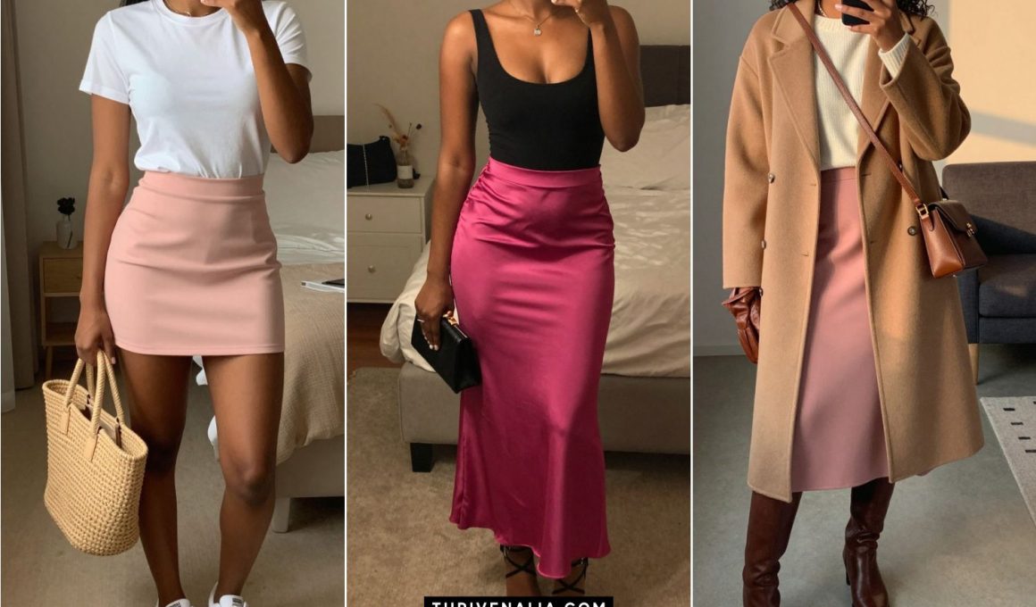 Sometimes the most impactful look is wearing one color head to toe. Pairing a pink top with your pink skirt creates a monochromatic moment that’s sophisticated and intentional. The key is mixing textures—a knit top with a satin skirt, or a cotton tee with a leather or suede skirt.