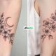 A sakura paired with a small crescent moon creates a design that feels calm, dreamy, and softly meaningful. It suits someone who wants a delicate flower tattoo with a gentle symbolic touch.